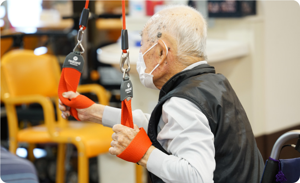レッドコードを使用した集団リハビリも行います。 -